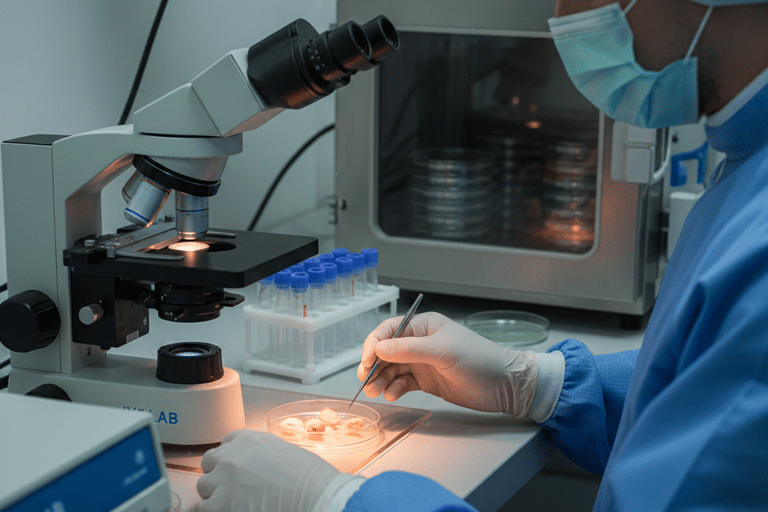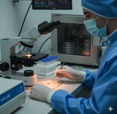 The fertilized eggs (embryos) grow in our state-of-the-art laboratory for 3 to 5 days. Our embryologists select the strongest embryos, often aiming for the blastocyst stage (Day 5) for higher implantation potential.